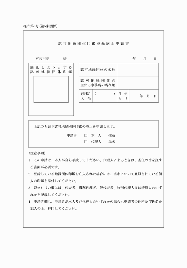 (5) 認可地縁団体印鑑登録廃止申請書 様式第5号