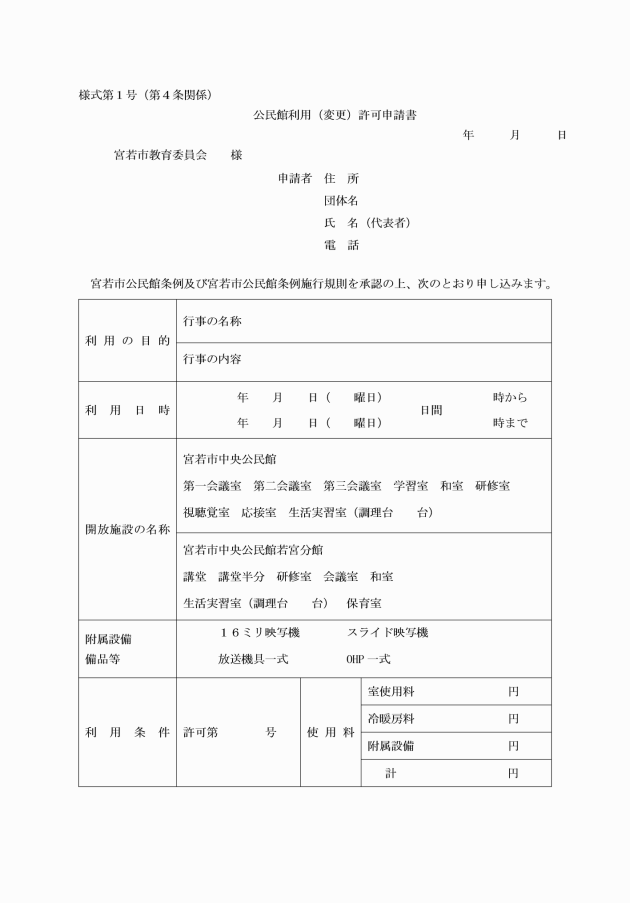 第5条 教育委員会は、公民館の利用を許可するときは、公民館利用許可書(様式第2号)を交付する。