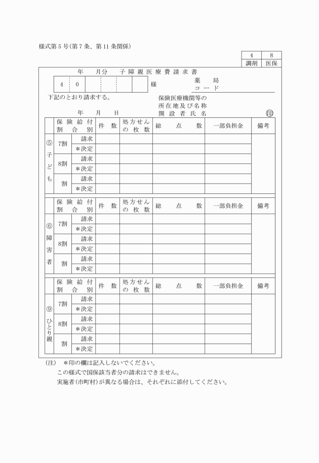 (6) 子障親医療費請求書(調剤用) 様式第5号