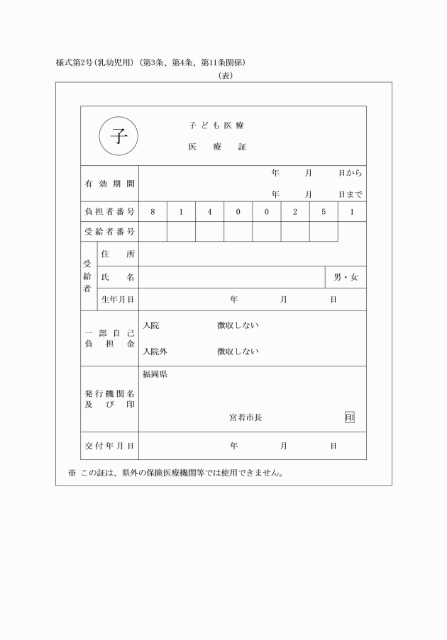 (2) 子ども医療医療証(乳幼児用) 様式第2号