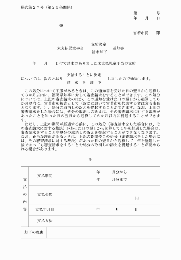 (2) 未支払の児童手当を支給するものと決定したときは、次によること。